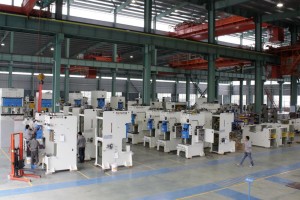 生產(chǎn)能力:東雄機床有限公司工廠共有五個生產(chǎn)車間,其中三個大型裝配車間配備6臺行車較大100噸吊重能力, 配備2千噸裝配能力大型組立坑道。適合生產(chǎn)15~2000噸的各類沖床。